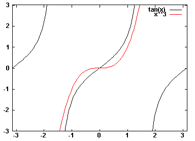 plot [-pi:pi] [-3:3] tan(x), x**3 - здесь устанавливаются, диапазоны изменения аргумента и области