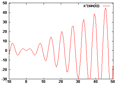 plot [:50] [-30:] x*(sin(x)) -