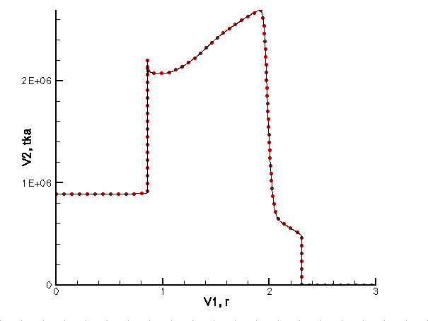 Однако, при построении графиков функции одной переменной, в среде графического приложения TECPLOT, можно вообще обойтись без использования каких-либо специфических записей. Для этого необходимо просто сформировать файл, в каждой строке которого содержатся значения координаты (абсциссы) и различных параметров в данной точке. При этом количество точек и переменных будет подсчитано автоматически, и последним будут присвоены имена V1, V2 и т.д. Единственное правило, которое при этом должно соблюдаться, так это то, что все значения должны отделяться друг от друга, по крайней мере, одним пробелом. В противном случае вместо загрузки файла будет выдаваться сообщение об ошибке. Подобного рода ошибка может возникнуть, когда в строку чисел, выводимых, например, в формате nE10.3, попадет отрицательное значение.